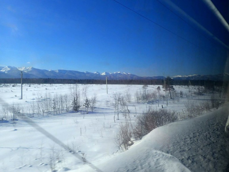 There was a chap travelling alone, however (a train nerd whose wife had firmly told him, that no, she would not be going with him!) and he and I chatted till we were able to see Lake Baikal again and it was cameras at dawn. He was super excited at this obviously, just a solo nerd like me, and Lake Baikal was on his can’t wait to see list. Actually, he was holding up quite well, he looked clean and remarkably focused, but I suppose it was because he was such a train anorak and didn’t want to join the others playing cards. This probably saved him from insanity.