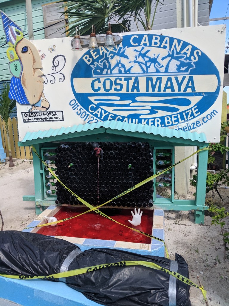 Belize requires it’s pound of flesh of twenty US dollars to leave! All’s well now though so I can tell you about caye caulker. You get a water taxi there and arrive at a typical little Caribbean island with brightly coloured little houses, palm trees hammocks and reggae.