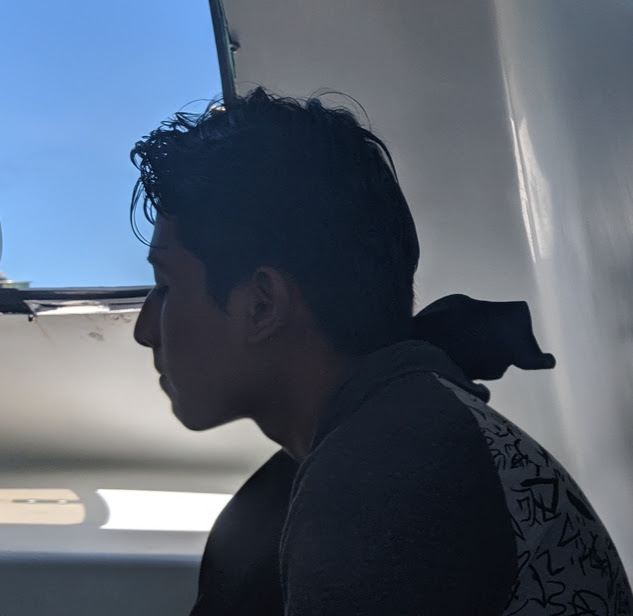 BOY ON BOAT WITH THE VERY TYPICAL AND BEAUTIFUL MAYAN PROFILE SEEN ON ALL THE ANCIENT ART