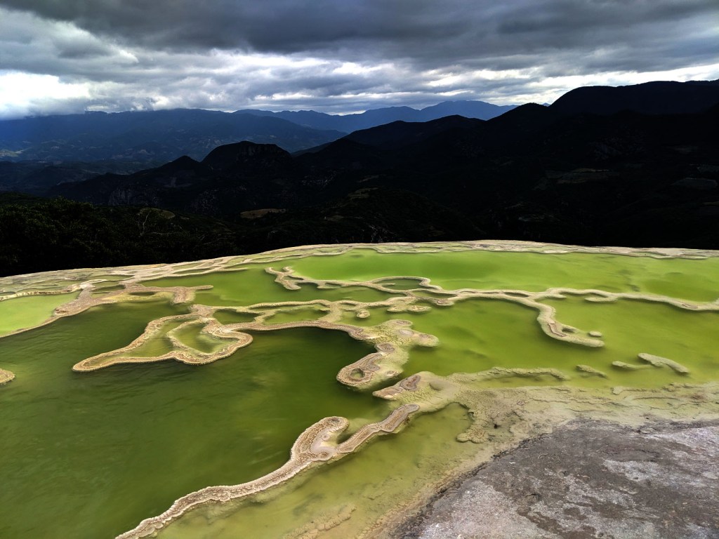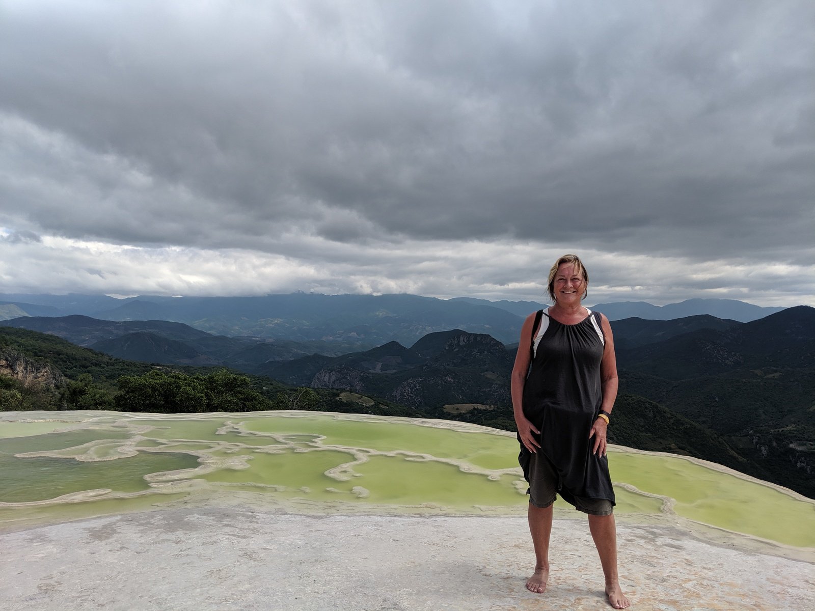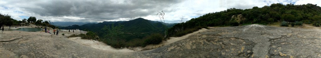 I want to jump to yesterday when I made the arduous journey to Hierve de Agua. With a slightly less balloon-like foot, I staggered to the bus terminal in the morning with a German couple as I was getting jumpy about going to the rough area where the bus terminal is. We didn’t know but later went through a very dodgy area then finally into a street which was lined with prostitutes and their pimps with brillianteened hair slicked closely to their heads, gold teeth and stereotypical leering faces of those attached to the profession. The different toned whistles up and down the street were obviously codes for “stupid tourists coming up your way, mug them” or something similar. Music was blaring and I was trying to disguise my limp, the girls were stonily staring at us so I went into some weird mode after muttering to my German friends “we are going to die” and starting smiling at them and singing along to the music. It actually worked, but really Rebecca?