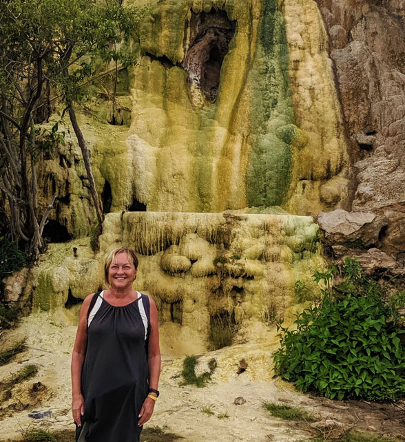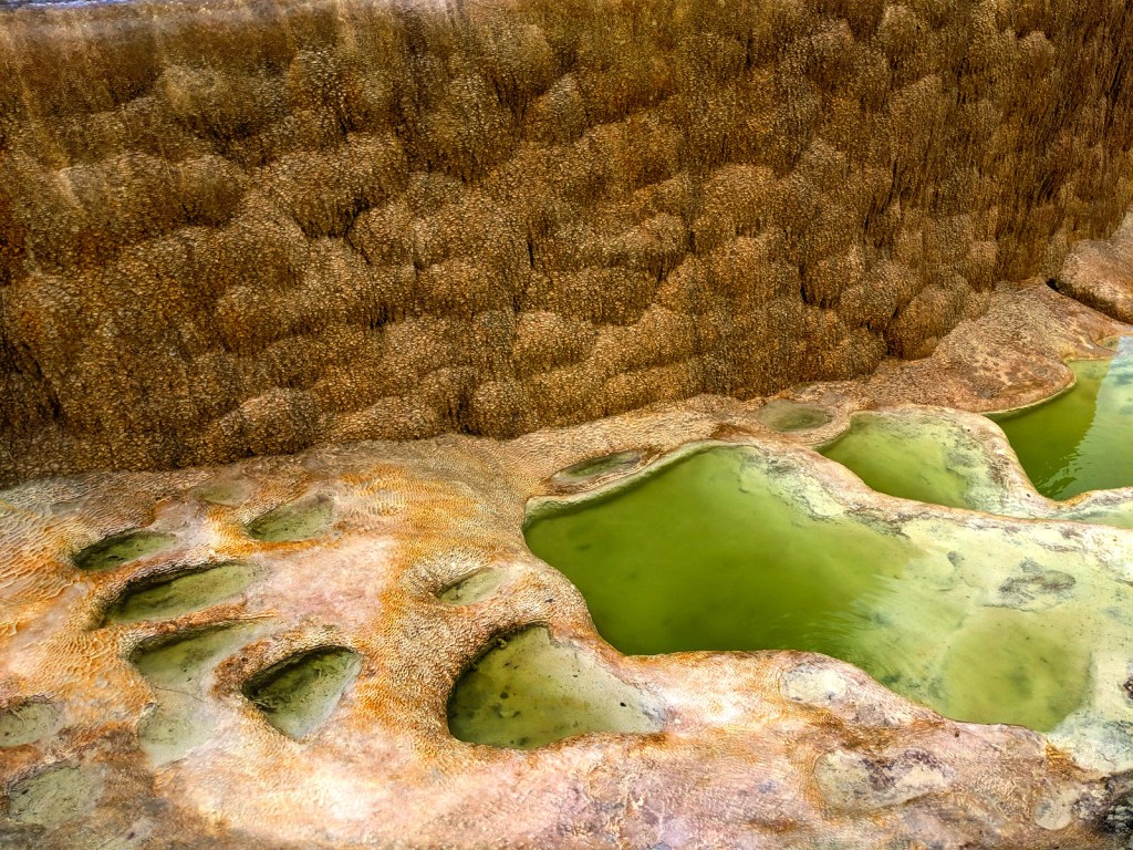 Arriving there was a relief and walking through the jostling stalls setting up for the day I parted company with my German friends and walked down a steep path to the pools. Turning the corner a breathtaking view appeared, it was surreal and heavenly. All pain is forgotten I gazed around with my gob agape. If you ever go remember a towel. It was cloudy and chilly when I was there so I only paddled in the mineral-rich water which appears vivid green and some rivulets are dark red as if the mountains were bleeding.