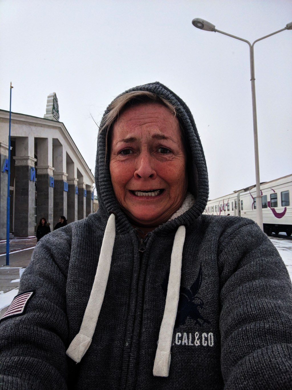 EARLY TRAIN STOP ON FROZEN PLATFORM IN MY CABIN ON ONE SECTION OF TRANS SIBERIAN TRIP