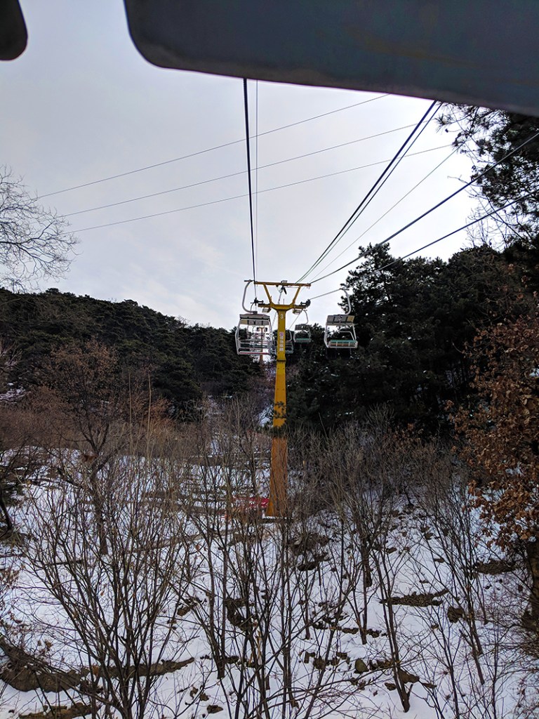 Now, I don’t like heights but I especially hate being in a chair going on a string up into mountains. Cable cars are too scary and I was pathetic and whining a lot of the way. This really cheered up my guide who by then hated me.