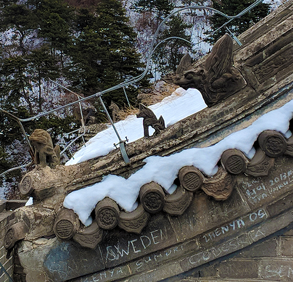 The watch towers or guard towers numbered about 25,000 at varying distances and messengers would run a relay for the latest news of any action. Some are simple and some ornate with dragons on their roofs for magical protection. These roof charms were to protect rather than decorate.