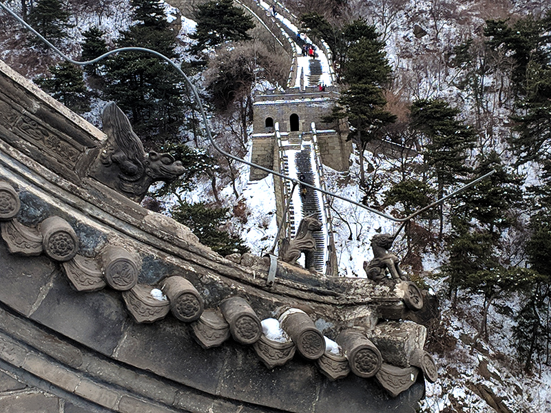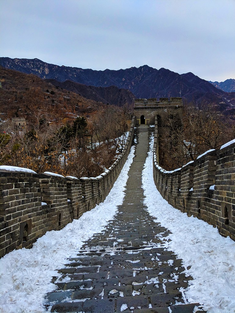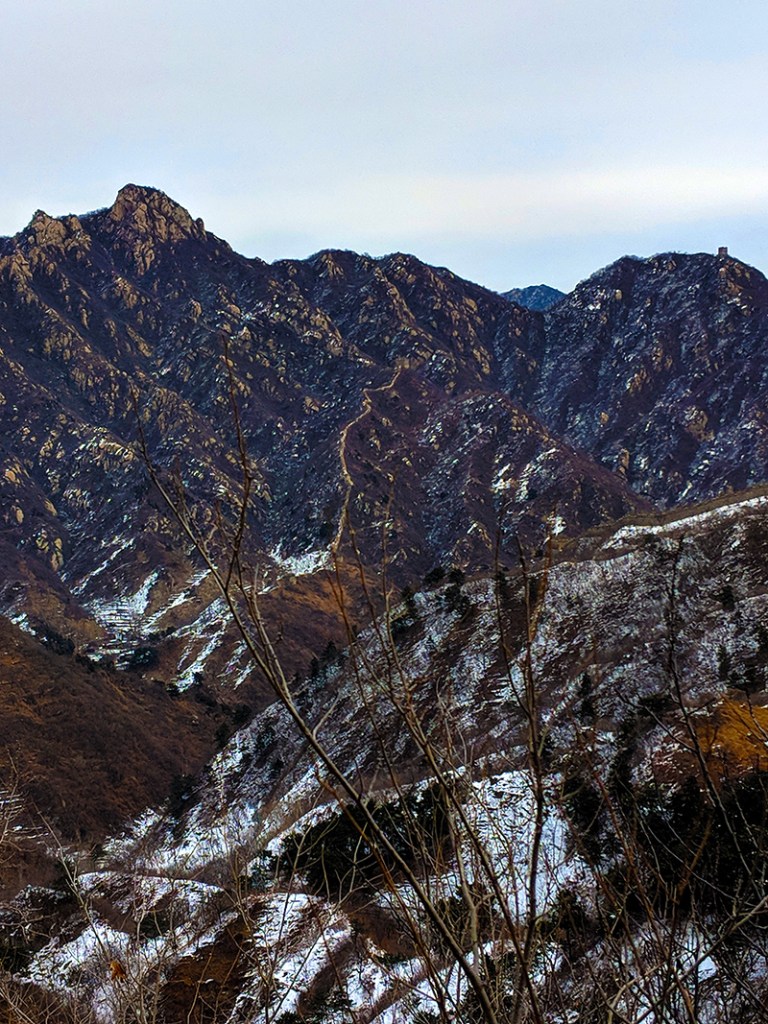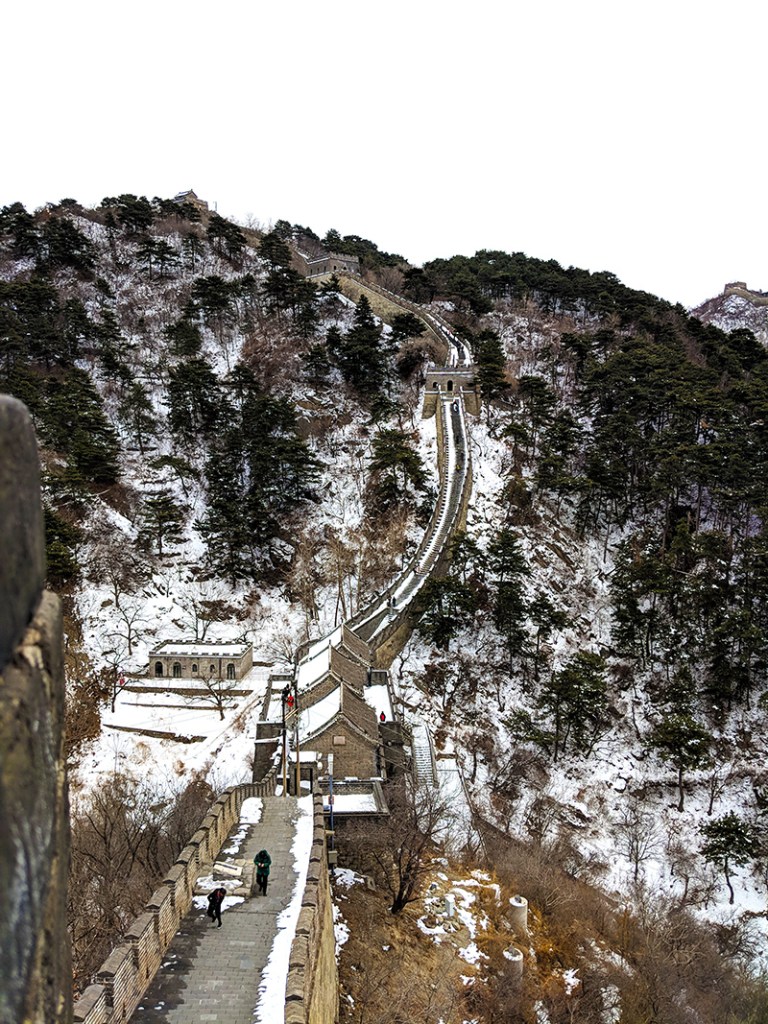TOP TIP: Now the point is of showing you these photos is, if you travel in the midst of winter you can actually have the place to yourself. I had been used by then, to have tourist free zones by travelling at this time of year. After my trip on the Trans Siberian Express this was a walk in the park. There were no bitter winds, and frankly, after all my ordeals since I had arrived in China, this was a balmy climate. I still had the fretting about the following days journey but it was laid to rest with this amazing experience. As I had been in Mongolia on my penultimate stop before China, it was bizarre to look over this wall to see the land it had been created for to was it’s enemy. The enormity is mind blowing. Ghastly shouty screamy foul tourists and irritating ones that want to run along it are not there. Me? I had it more or less to myself. If you plan to go winter is simply the best time.