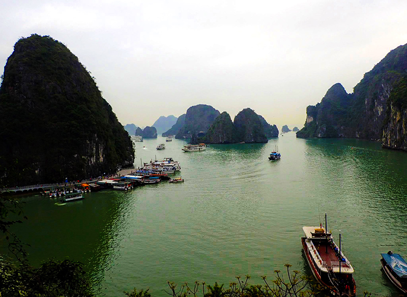 Now there are 1,969 of these and they all are terribly similar. True you only get to see a very tiny percentage on el cheapo tours but they are all very samey. I think on a hot sunny day you wouldn’t give a monkeys and it would be fabulous, but may I suggest my friends don’t go in winter on a wet cloudy day. Legend has it that they were spat out by a protective dragon as jewels and jade to protect against China.In sun very precious jewels, in cloud not so much. However for the eerie drama and legend it was magical and there weren’t so many boats…..
