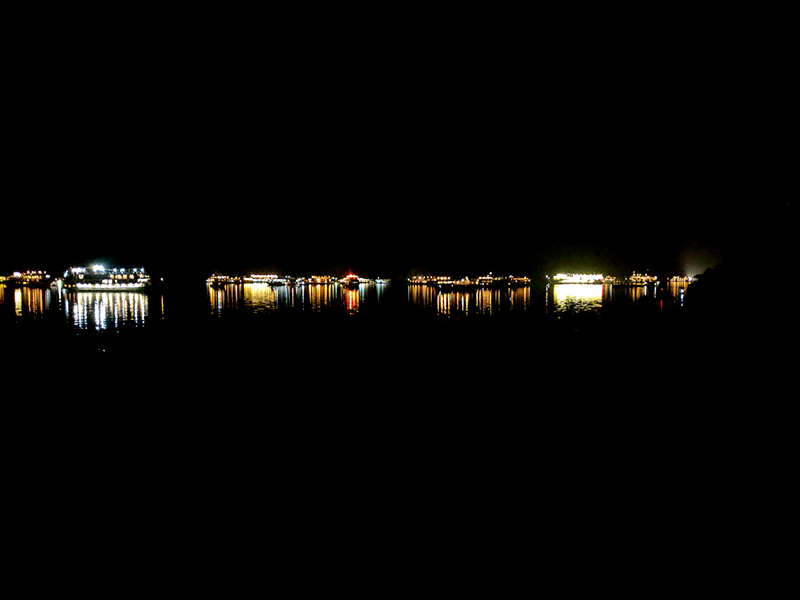 ……We turned a corner and living hell was entered. Huge groups of similar and slightly more fancy boats nestled into one area with islands around. Quite why they all have to be there was beyond me until the tour guide explained to me in a quiet moment that they preserved the rest from this feeding frenzy, and yes if you paid more you could get private or more expensive boats. If I had of known I would have definitely done that.