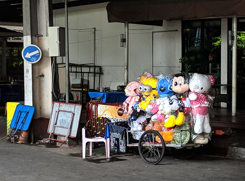 By the end of what turned out to be a long frustrating day of little pleasure I went back to my extended stay room at the hotel only huff and puff, sigh and groan, fidget and build up stress for want of getting to the airport and get on with my continuing journey. It had been a mistake coming here a second time. I had stayed by the river last time and even then I didn’t really like the place but it was MUCH better than this fucking area. It was a kinda no-mans land. Kinda beige. I’d been by the river and gone to a floating market at the other place and there was a market street to wander around at night, buy Thai elephant trousers and silly T shirts, get a bit of tasty Thai street food and go for a drink and people watch. This place however was dreary. I went back to the hotel restless. I had hours til the plane but I was bored and fidgety so I left for the airport.
