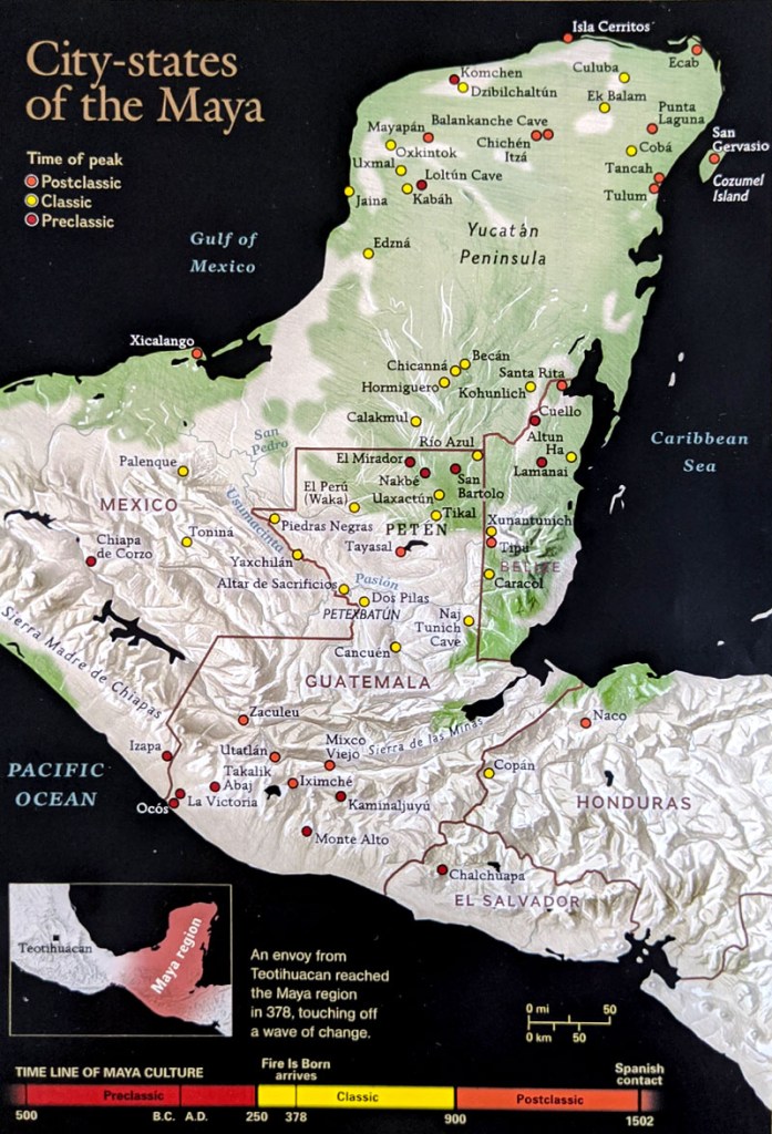 Dear reader, after my extensive travels within the Yucatan Peninsula in 2019 and 2021, I can finally start to try to put together a history of as much as is presently known, a layman’s look at this civilization and its evolving and previous influences. For such a huge and powerful empire to only relatively recently been found in the sprawling dense jungle, peeping out to tantalise us, is a wonder in itself, and only a very small section has actually been uncovered, However mighty, things come and go and nature will reclaim past enterprises. Whether it be by jungle or desert sand, civilizations once great become hidden and forgotten in the mists of time. We are re-writing history with the major discoveries that are being found all over the planet, pushing our ancestral dates back further and further which is frankly showing us how we haven’t had our ancestral timeline right at all.