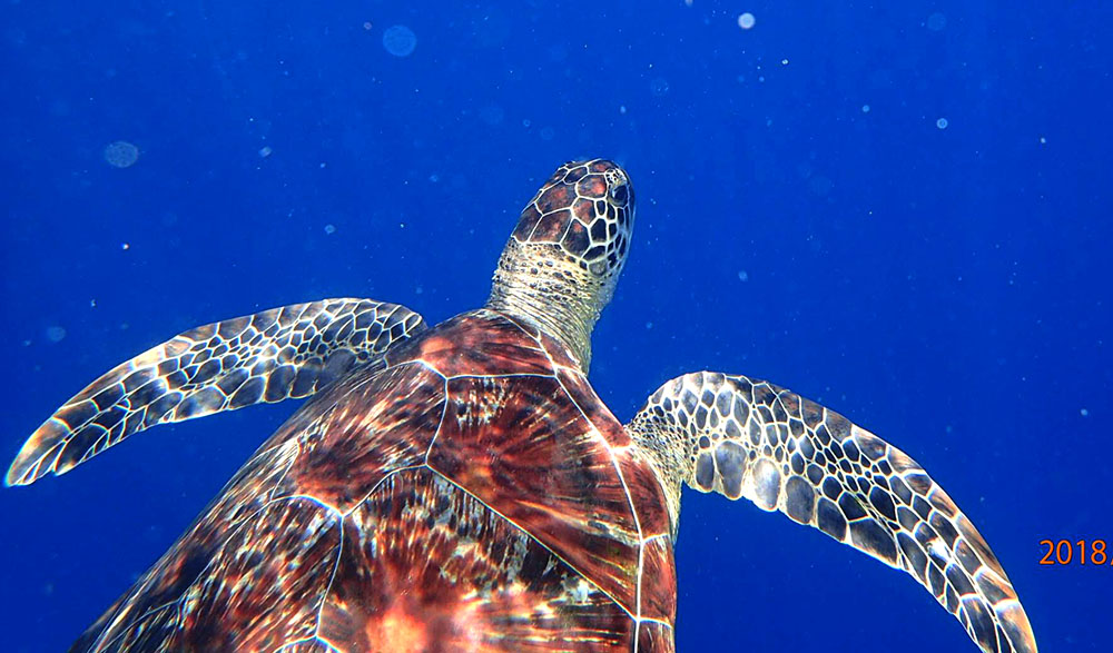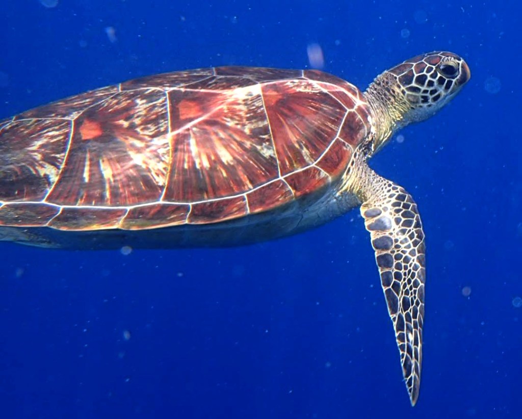 I had already got bashed on the head by a bloody boat earlier at a crowded dive spot and was grumpy having shouted angrily at the skipper who was moving his boat and not looking where he was going. Although he apologised profusely, I was shocked and very angry, whether my vibes carried with me to the next location, we will never know, but there’s no doubt that my turtle befriended me, and not the other way around.