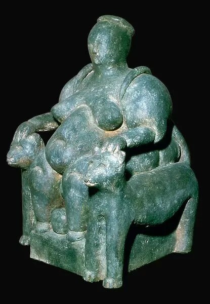 The double mound of Catalhoyuk, 45 kilometres south of modern Konya, dates from the eighth to the sixth millennia BCE. The famous figurine found at Çatalhoyuk, (Archaeological Museum- Ankara), is generally conceded to depict a corpulent and fertile Mother Goddess in the process of giving birth while seated on her throne, which has two hand rests in the form of feline (leopard or panther) heads. The similarity to later iconography of the Anatolian Mother Goddess is striking.