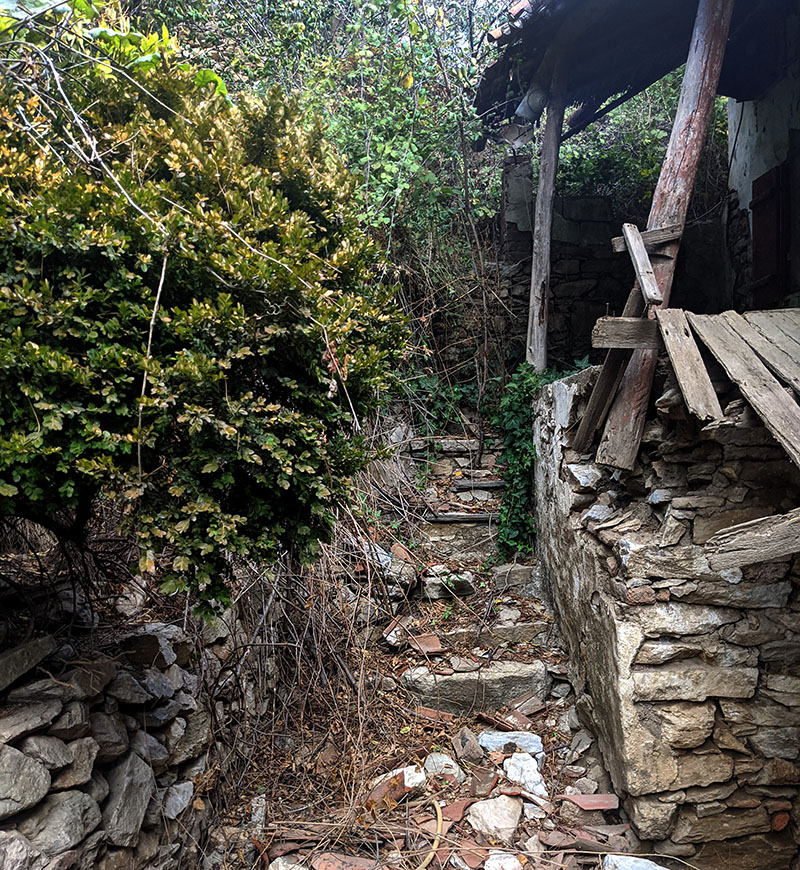 So this is where I’ve been and I found my little bit of heaven in the form of a dilapidated house with a large garden that has olive, pomegranate, mandarin and orange trees to name a few. Also, someone had been using the land and there is a big overgrown veg patch with aubergines, tomatoes, peppers and chillies and what looked like okra. The house is old and needs a new roof and a lot of work but as an artist, I could see beyond the brambles and chaos and I fell in love.