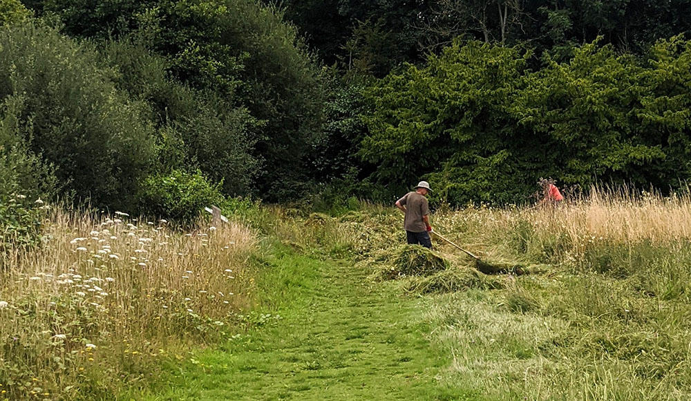 Haymaking is an important part of the conservation of Frogmore Meadow. The grass is cut in late July after most of the flowers have set seed. Over the following days, the ‘cut grass is turned daily to ensure that it dries out evenly.