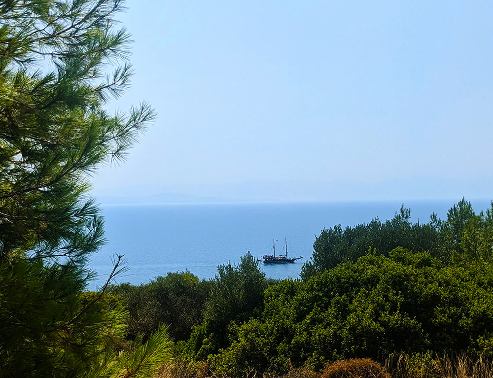 I was in a weird mood. My back was better due to sleeping in a proper bed, but I was having trouble sleeping through the night. I’d bought a Melissa tea but hadn’t noticed it had St. Johns Wort in it, which doesn’t agree with me at all, instead of calming me it makes me edgy. I was eating very little and drinking and smoking a lot and the very idea of getting on another minibus to a beach I had discovered on the map just filled me with dread.