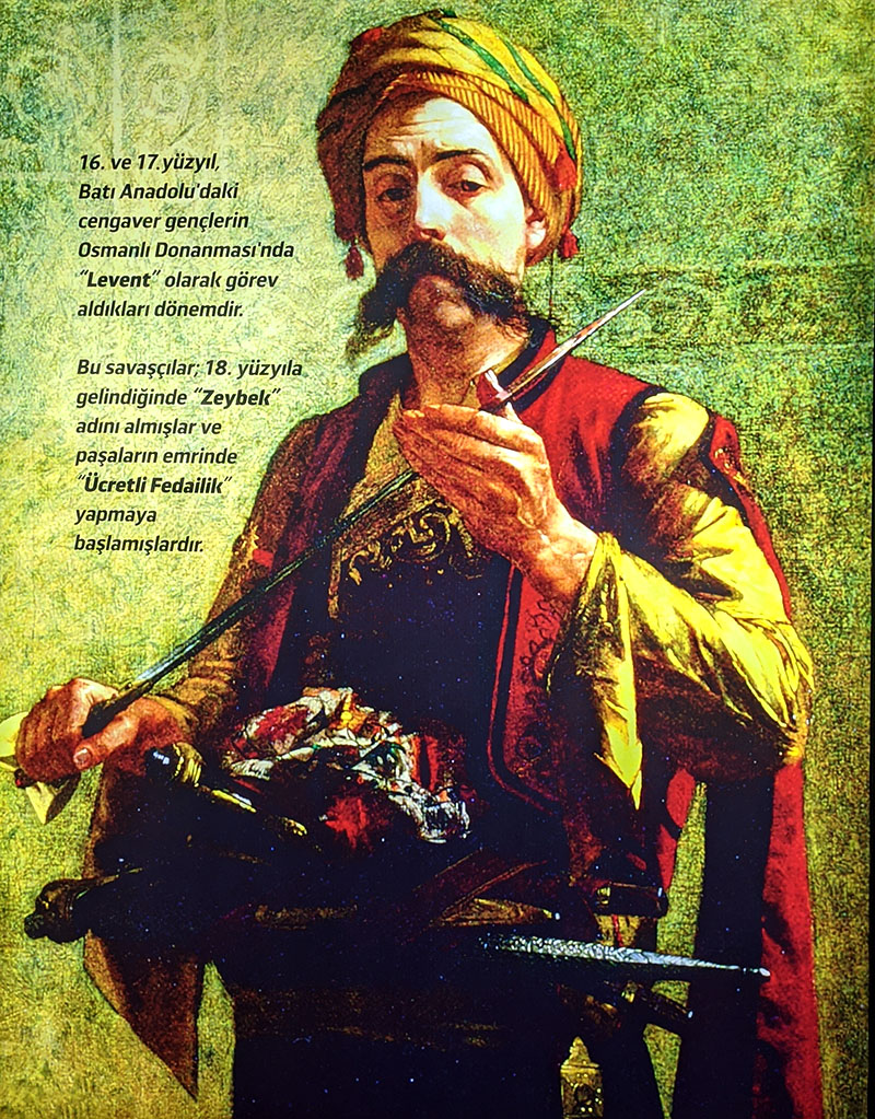 Western Anatolian levents, the predecessors of Zeybeks; were included in the Ottoman Navy when the Mediterranean turned into a Turkish lake thanks to the famous Turkish sailors such as Kemal Reis, Hızır Reis (Barbaros Hayrettin), Oruç Reis and Turgut Reis. Young people from Izmir, Aydın, Denizli, Manisa, Muğla, and Balikesir; Together with the experienced Ottoman chiefs at their head, raided North Africa, Spain, Italy, France and the Adriatic coasts and defeated Europe’s most famous admirals. At the same time, those who preferred to race on land, swing swords and shoot rifles instead of sailing were sent to the difficult Austrian and Iranian fronts as mercenaries through the pashas and influential families. During the military duties they undertook, they were described as representing a duty or praise such as “valiant, levent, sekban, tall-proportioned, strong-willed, prudent, guard and rifleman”.