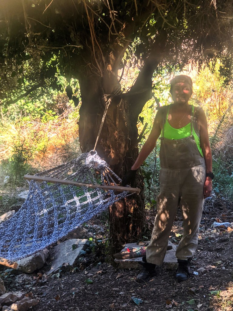 When I have meditated in my hammock I find such deep peace that I have never encountered before. The almost biblical view from there and way of the villagers and animals busy doing the things their ancestors would have done in harmony with the land. Apart from the tractors shouldering the burden of labour, the harvesting is done manually. Often I see tractors whizzing by with old ladies clinging on to go to pick figs from distant fields. Indeed I’ve seen a few ‘frail’ old ladies driving off at speed on those big old tractors totally at ease with being in the driving seat. The women’s toughness amazes me. One neighbour who is in her eighties scrabbles over the stream and climbs my wall into my garden to make a shortcut to what I call gossips corner. This happens to be at the end of my drive which means I am often clearly the topic of their chatter as they show their enthusiasm for the work I’m doing in the garden.