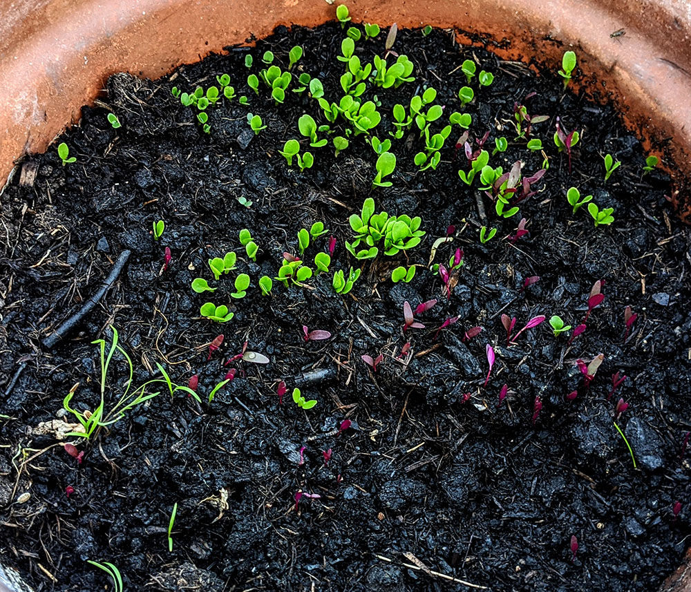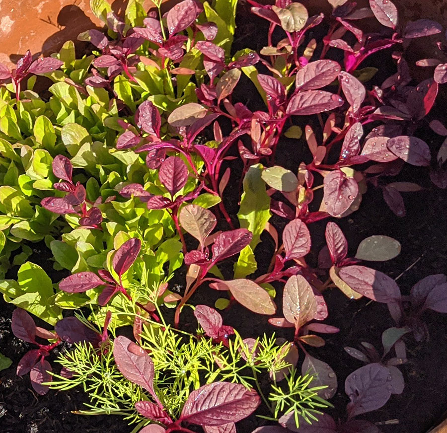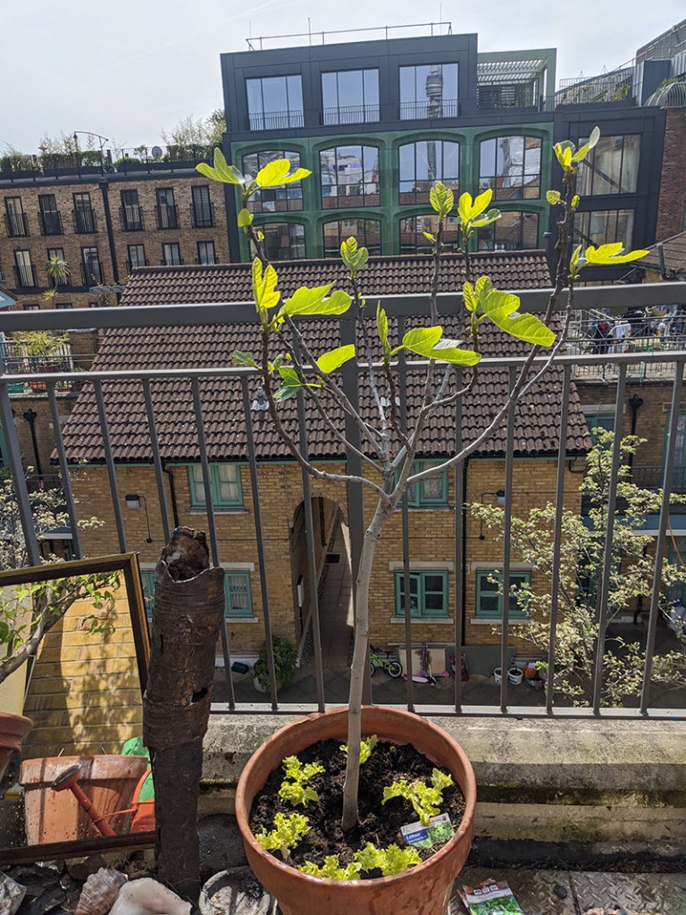 My first lettuces cohabiting with my poor fig tree which now is a much happier specimen