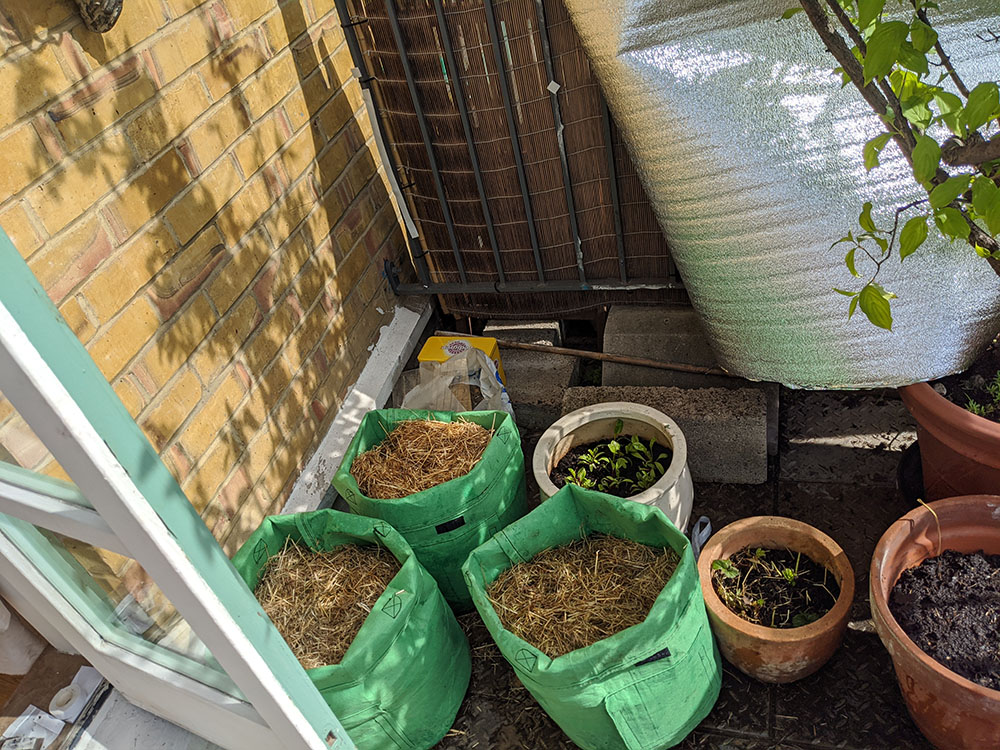 My nod to Peru was by getting a whole load of pink fir apple potatoes to plant in some nifty sacks that have a velcro ‘door’ on the sides to peek at your produce. I got that done straight away as I was already late with it, and had to go to a pet shop to procure some hay for mulch.