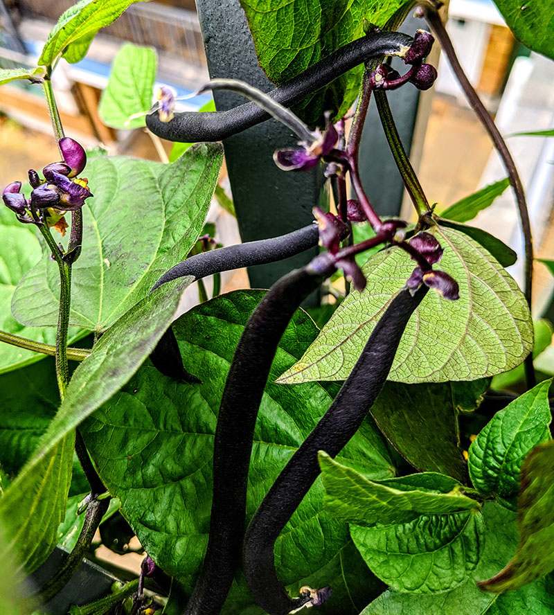Oh and I’ve just seen my black long beans are ready for a taster plate portion. There are loads but I have to have a nibble! Apparently, they grow to over a foot in length.