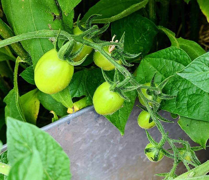 I’ve been eating salad of herbs, lettuce, cucumber, tomatoes and nasturtium every day and have had various combos of calaloo, squash, beans and potatoes for my veg with my dindins!
