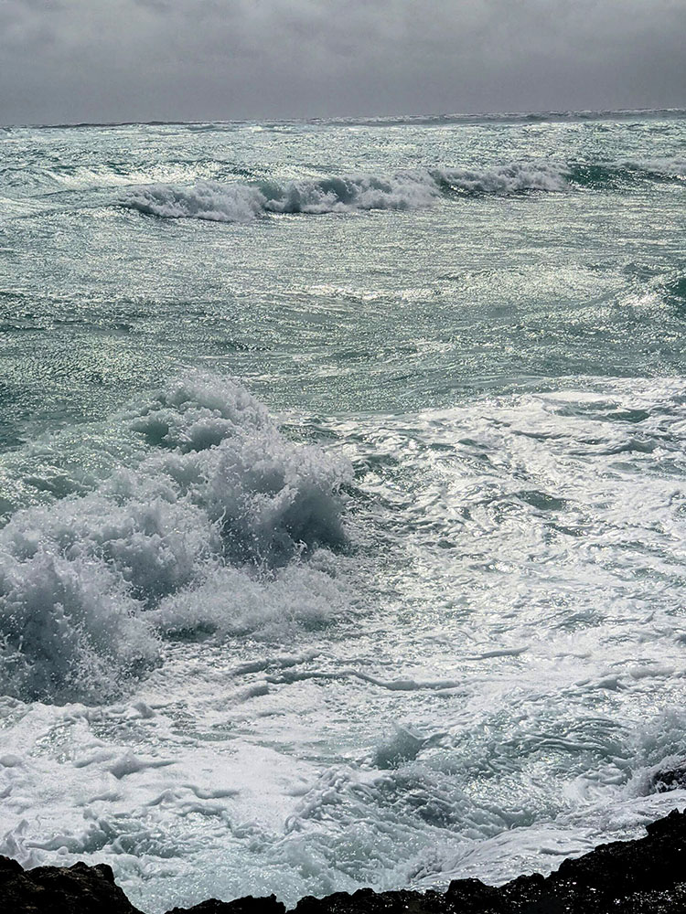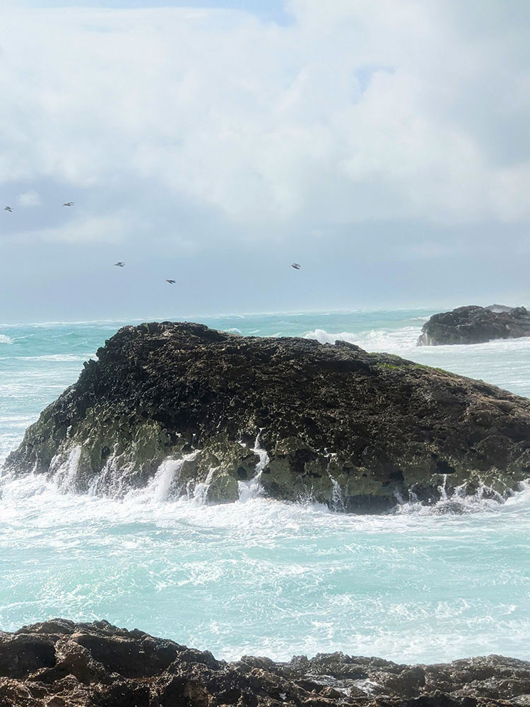 As we arrived I saw that it was indeed a special place with a huge rock at it’s centre. The waves were crashing in and the sky was ominous but what the hell. I was going to have an emotional day remembering my times of living on the beach three years previously. The tail end of the hurricane made for a strong undertow so you couldn’t really swim but dip and roll around in the surf. Finding a nice spot I set up for the day after having climbed the rock of course. Up there you could see the majesty of that powerful sea and feel the wind that whipped it up. Getting thoroughly drenched and laughing like a lunatic I returned to my spot. I was exhilarated and in wonder at the dramatic colour contrast of aquamarine sea and brooding dark clouds.