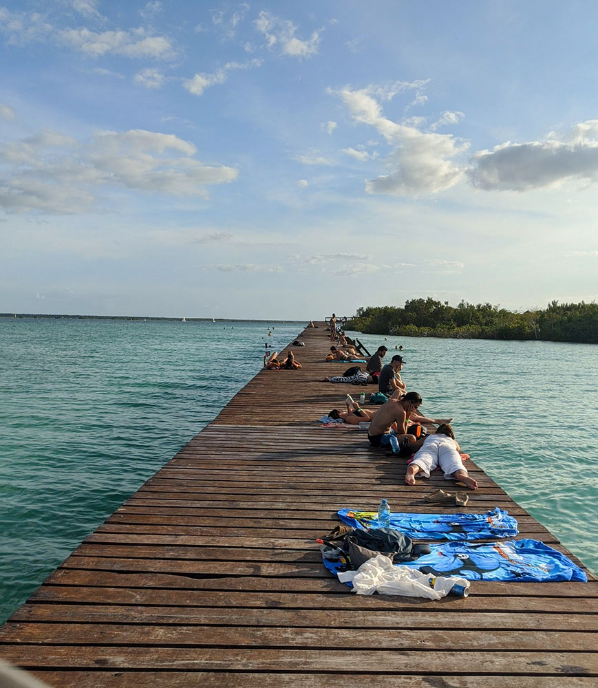 Tomorrow I also am moving on to a beautiful beach place called Mahahual, but not before meeting up with my new mates on the pier for a swim and an intellectual chat while bobbing around in the water. That’s the other thing, these solo travellers are like-minded and love freedom and are just, well a breath of fresh air!