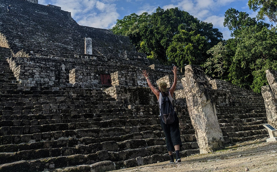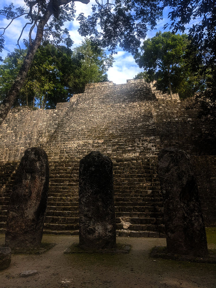Long heralded a superior site in the Mayan world I was again disappointed. The Grand Acropolis was closed. I only found out from a young guide after going around the pyramid square which also houses many stelae but in poor condition. When I asked the young guide kinda chap he started to walk with me. I must admit my hackles raised a bit for I could see hardcore money push happening. Anyhow long story short he told me it was bloody closed which again they had failed to mention at the ticket desk. I don’t care to climb fucking dangerous pyramids thank you very much which is all the younger generations want to do, which is fine it’s just not for me. I have terrible vertigo and once climbed a very high temple in Cambodia with high very thin steps. On reaching the top I decided I could never go down again. I nearly puked looking at the climb down. I would just live on top until they could send a helicopter for me. I would lie on the floor and refuse to move. I would scream if anyone touched me to cajole me down that slippery awful stairway. My freak out was allayed when I was told that there was a rope bannister on the other side by a kindly person who saw me whimpering and ashen-faced. I managed my way down the other side eternally grateful and swore that I would never be so stupid again. I have been of course. The only time I climbed a very tall pyramid was at Tikal where they have very sensible wooden staircases zigzagging their way up to the top and once there the view indeed is magnificent. Above the forest canopy, you can understand their ethos at being connected to the sky and their gods. However, once you’ve done it once and perfectly at Tikal you really don’t have anything more to see so it’s all a bit silly for someone like me.