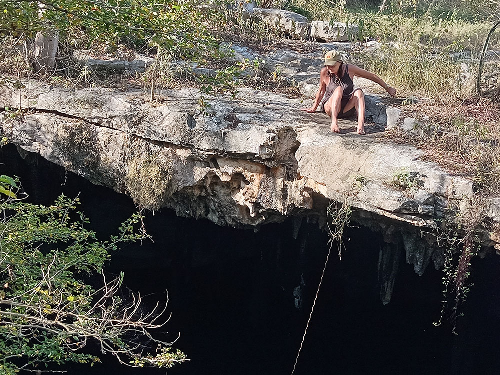 I would visit a couple of cenotes fully in the following days, but this beauty with its danger and brutal beauty hooked me. Aleph took some pics for me as I dreamily, but cautiously, circled it and sat upon the heated stone for a little meditation and earthing. The quartz and limestone there pulsed energy through me and finally flushed out the dismal and broken feeling that I had had most of the time this trip to Mexico. It would be my temple for the next few days where I would come and sit bare footed and bare bummed to accept my healing and love. The birds took over from the night sentry of bats who were the guardians of the night, and would come and fly circling and tweeting around the dark echoey cave in their mad exultation of the sun that came through the top. This happened every day, this was a sign of the glory of mother earth. This is what brings you back home again.