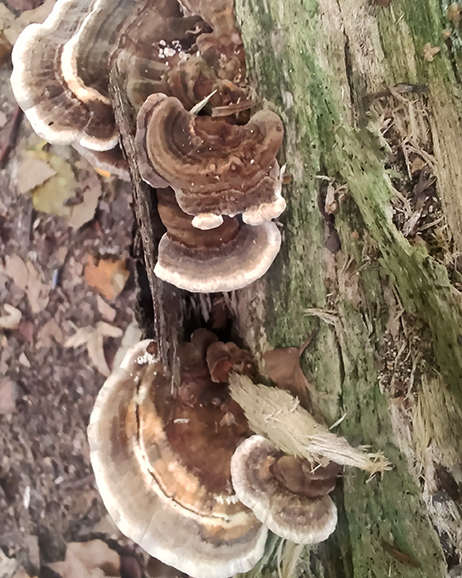 I found what turned out to be two distinct ones, the traditional ones that have a spectrum of blue greys to more earthy browns in their striations’. on another log I found more orangey that I originally thought were ochre brackets but when they dried back at home are just any turkey variant. and very stripy. Happiness is a muddy falling over in the woods old bird…. yes I was looking upwards hopefully for Chaga and some bracken caught me and I went arse over tit. What? It’s traditional for me to fall bash and crash at least once in my walks or travels.
