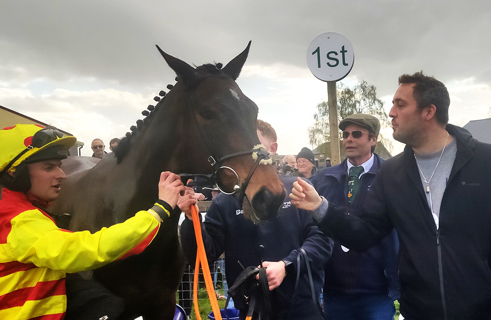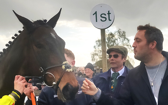 I have just a handful of photos for indeed I had enough trouble getting my change out for my bets let alone try and get my freezing hands to manipulate the camera. However the most important thing other than Jamada winning convincingly, was my getting into the much coveted winners enclosure and meeting the very lovely team and the very smug horse with his ears pricked up the size of a donkey he was that pleased with himself.